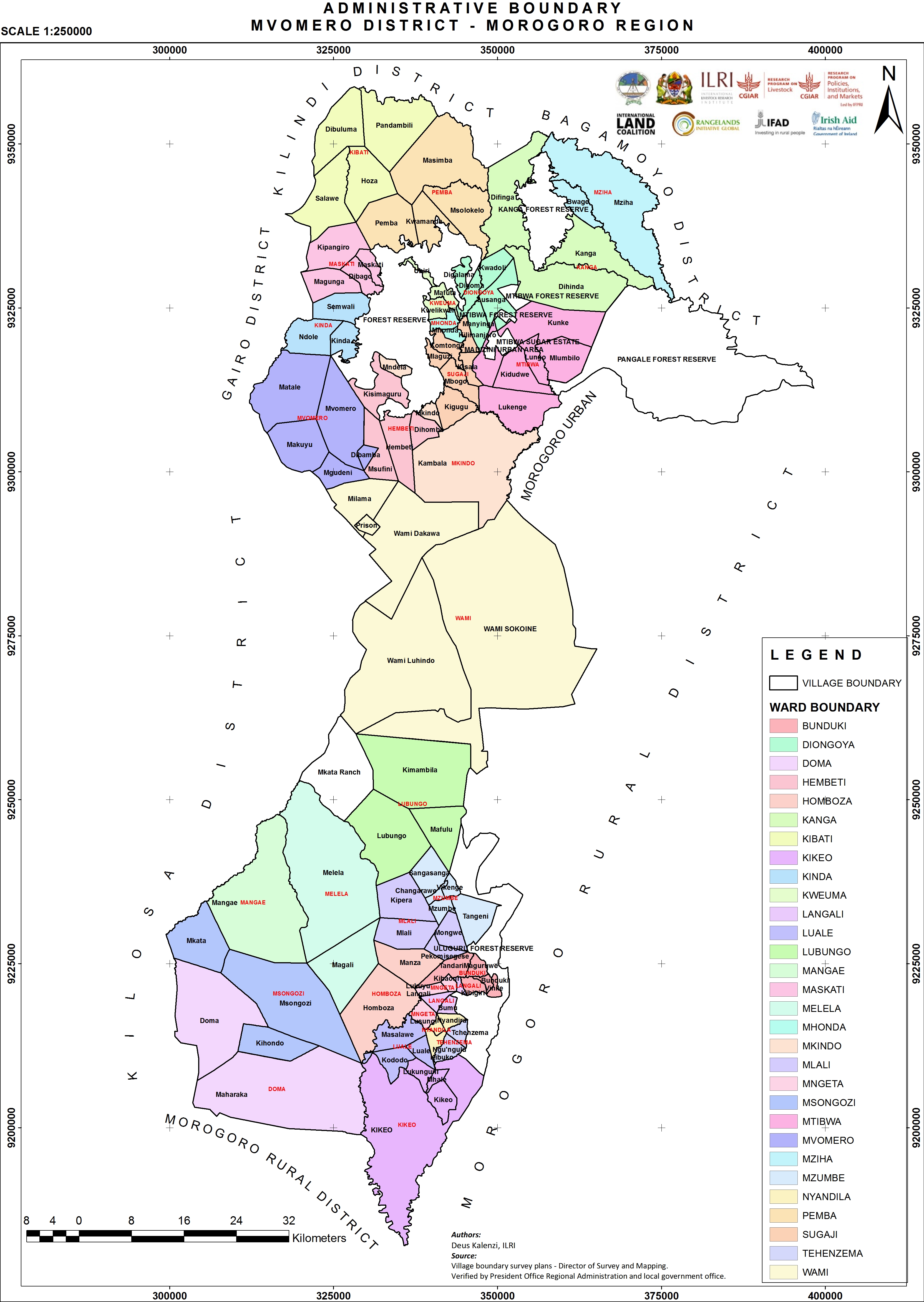 Kalenzi, D. 2018. Administrative boundaries in Mvomero District, Morogoro region. Nairobi, Kenya: ILRI.